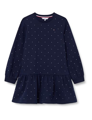 Tommy Hilfiger Girl's Festive Stud HWK Dress LS KG0KG09273 Sweatshirt Dress, Blue (Dark Night Navy), 6 Years