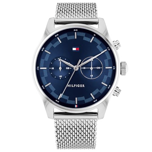 Tommy Hilfiger Analogue Multifunction Quartz Watch for Men with Silver Stainless Steel mesh Bracelet - 1710420