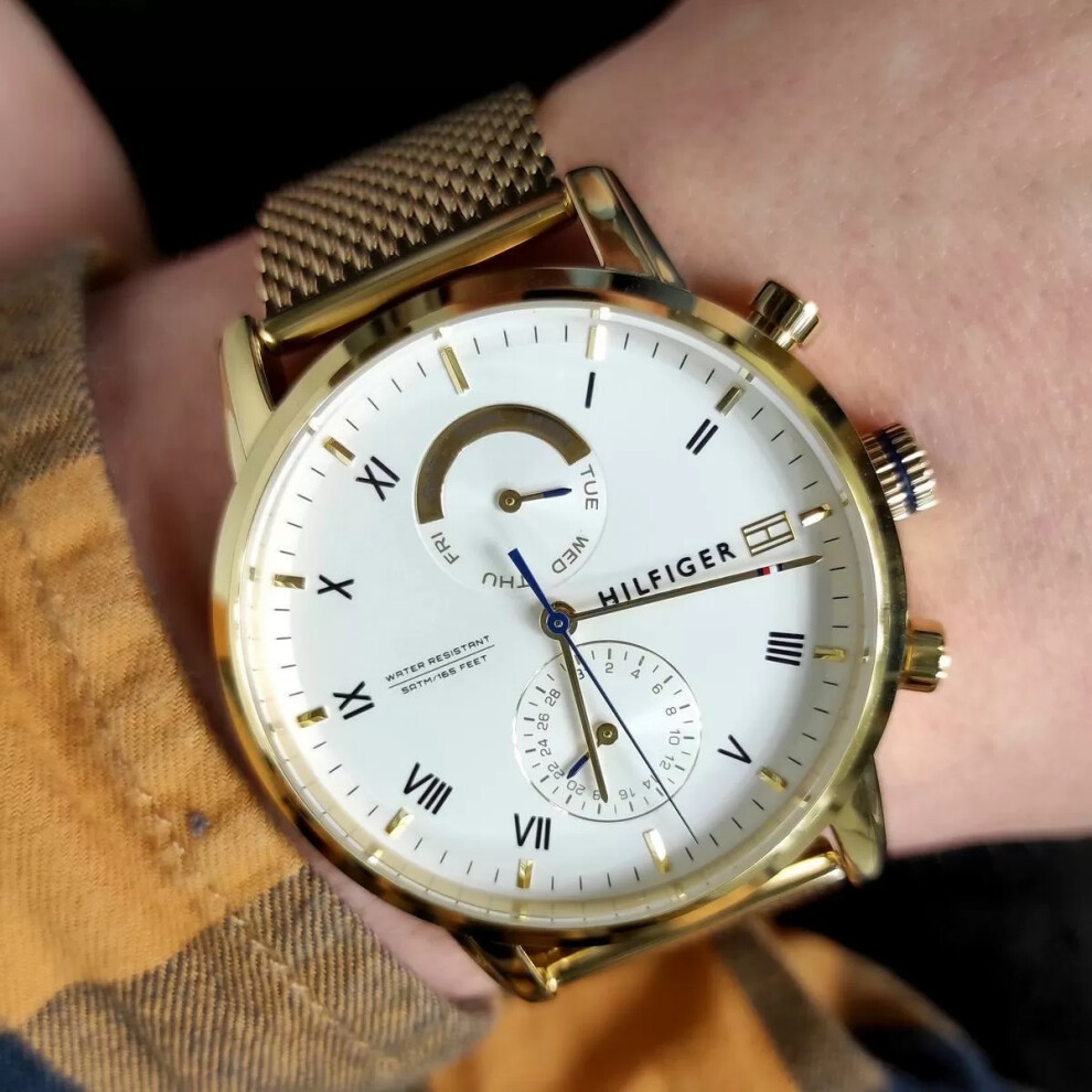 TOMMY HILFIGER 1791538 MEN'S WATCH GOLD STRAP WHITE DIAL GOLD CASE