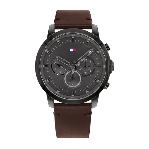 Tommy Hilfiger Analogue Multifunction Quartz Watch for Men with Dark Brown Leather Strap - 1791799