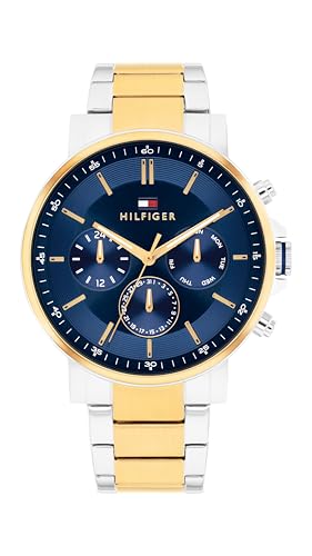Tommy Hilfiger Analogue Multifunction Quartz Watch for men with Silicone, Stainless Steel or Leather Bracelet, Day & Date Sub-Dials, 5ATM Water Resistant