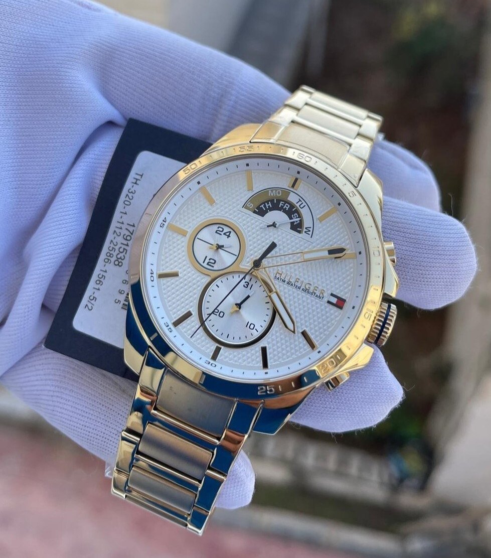 TOMMY HILFIGER 1710403 MEN'S WATCH GOLD STRAP WHITE DIAL GOLD CASE