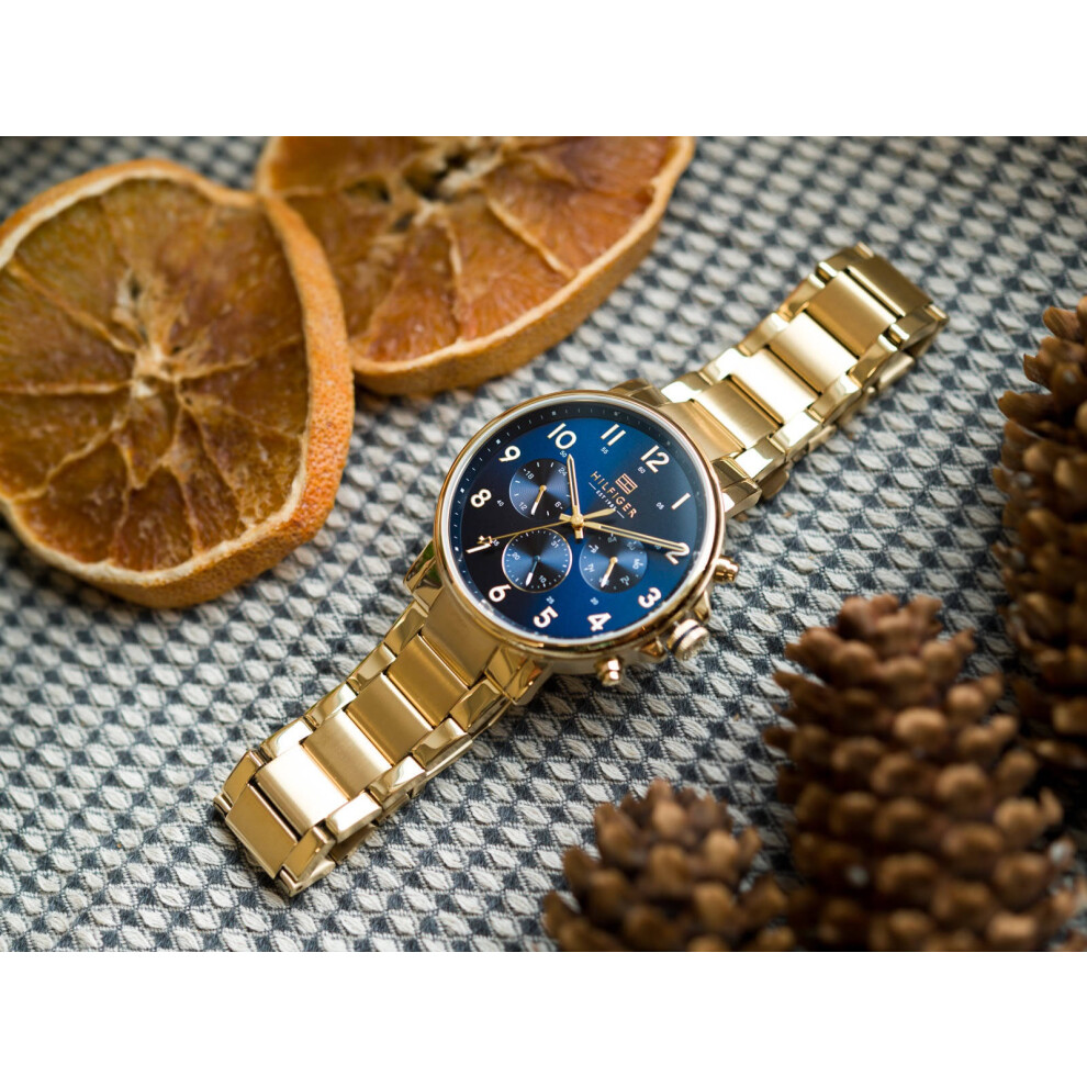 TOMMY HILFIGER 1710384 MEN'S WATCH GOLD STRAP BLUE DIAL GOLD CASE