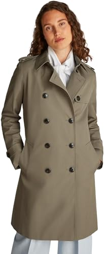 Tommy Hilfiger Women's Cotton Slim Fit Short Trench Coat, Brown (Tundra Brown), 14