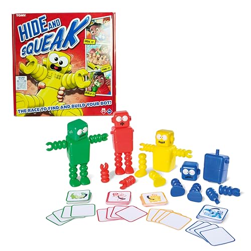 TOMY Hide and Squeak Robots, Robot Building Scavenger Hunt Game forKids, Active Indoor Games, Kids Games for 4 Year Olds and Older