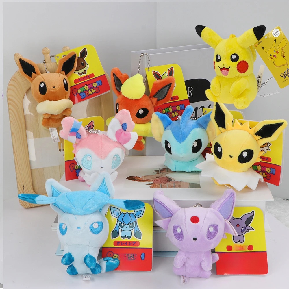 Pokemon Eevee Family Keychains Pendant Plush Toy Glaceon Vaporeo Sylveon Espeon Flareon Cute Anime Stuffed Doll Birthday Gift