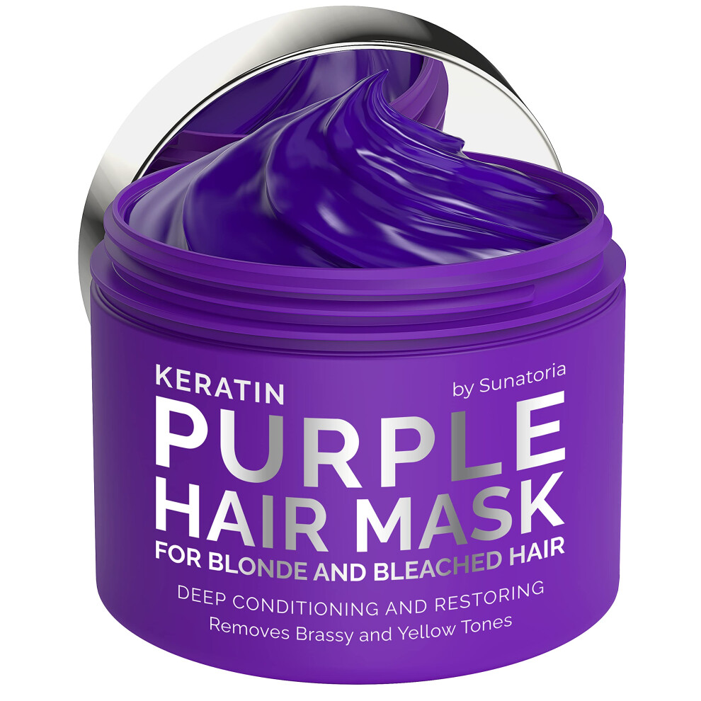 SUNATORIA NEW Keratin Purple Hair Mask- Blonde Hair Purple Toner - Repair & Nourishment Treatment for Bleached Brassy Hair - No Yellow Tones - Deep C