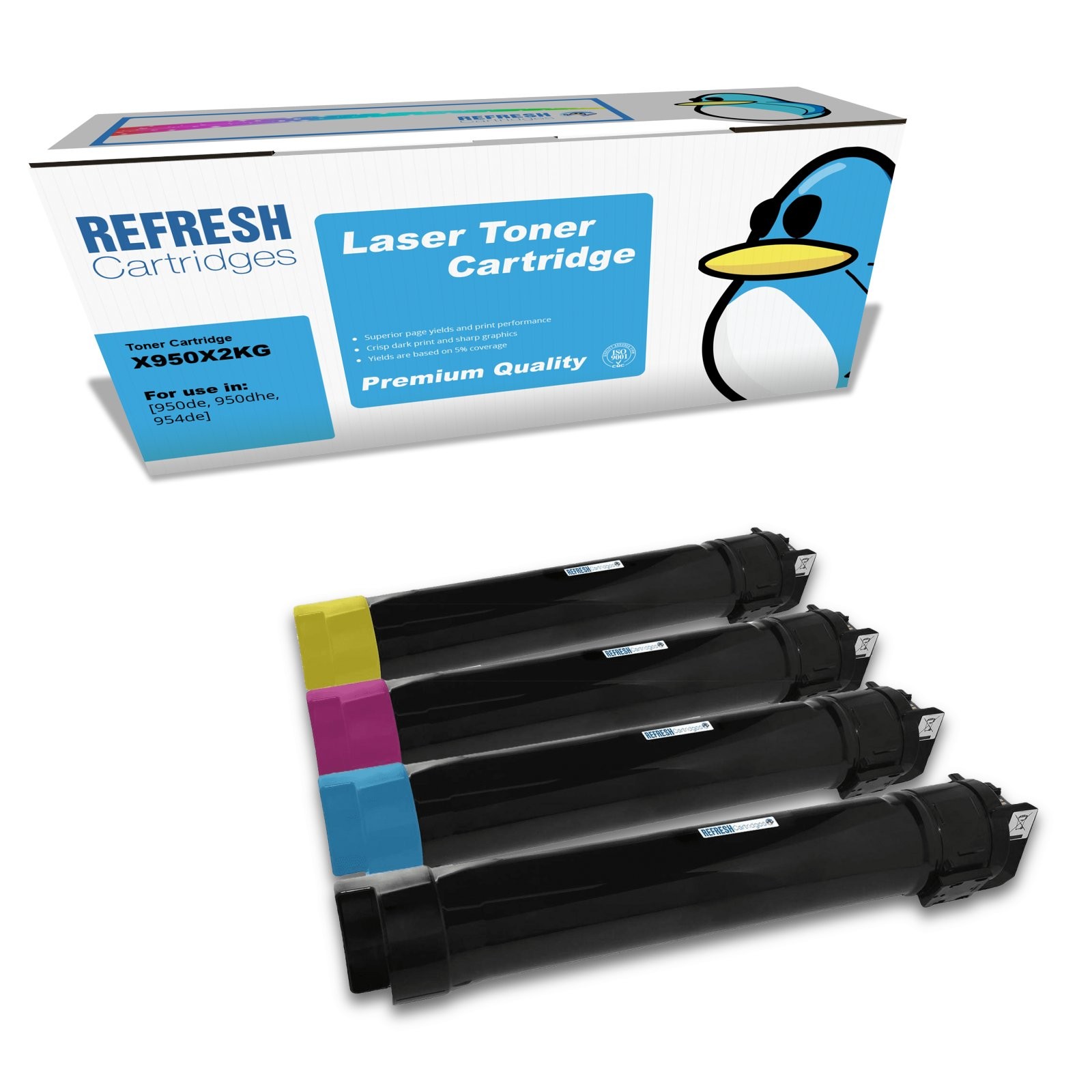 Refresh Cartridges Full Value Pack of 4 X950/X952 Toners Compatible With Lexmark