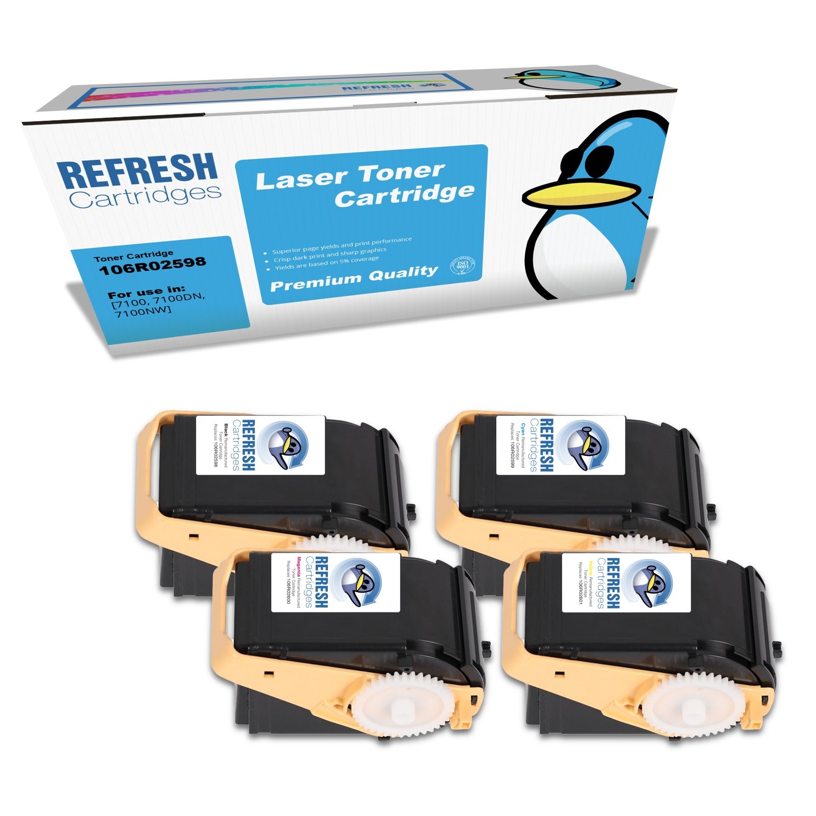 Refresh Cartridges Full Set 4 Pack Toners Compatible With Xerox Phaser 7100