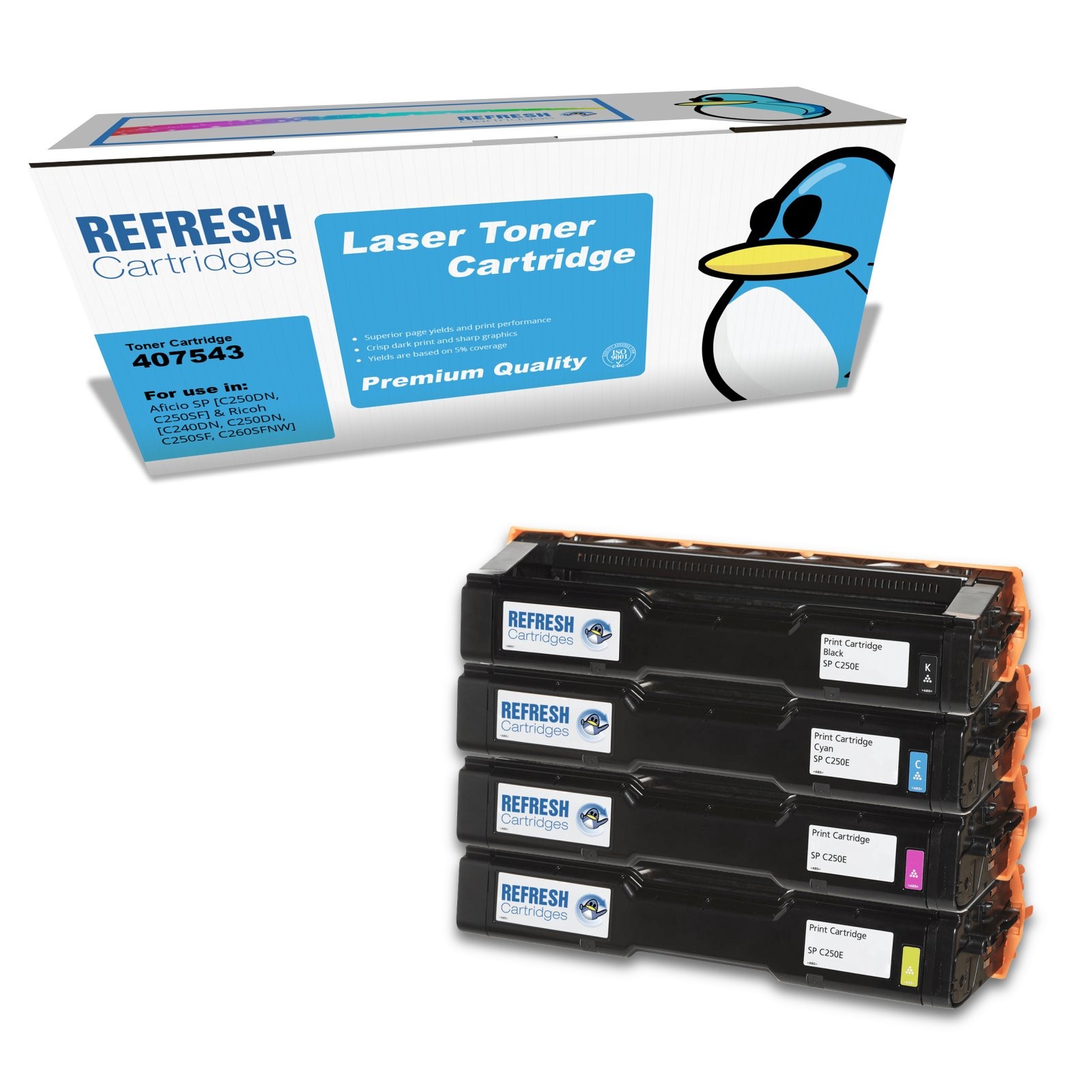 Refresh Cartridges Full Set Pack SP 250CE Toners Compatible With Ricoh Printers