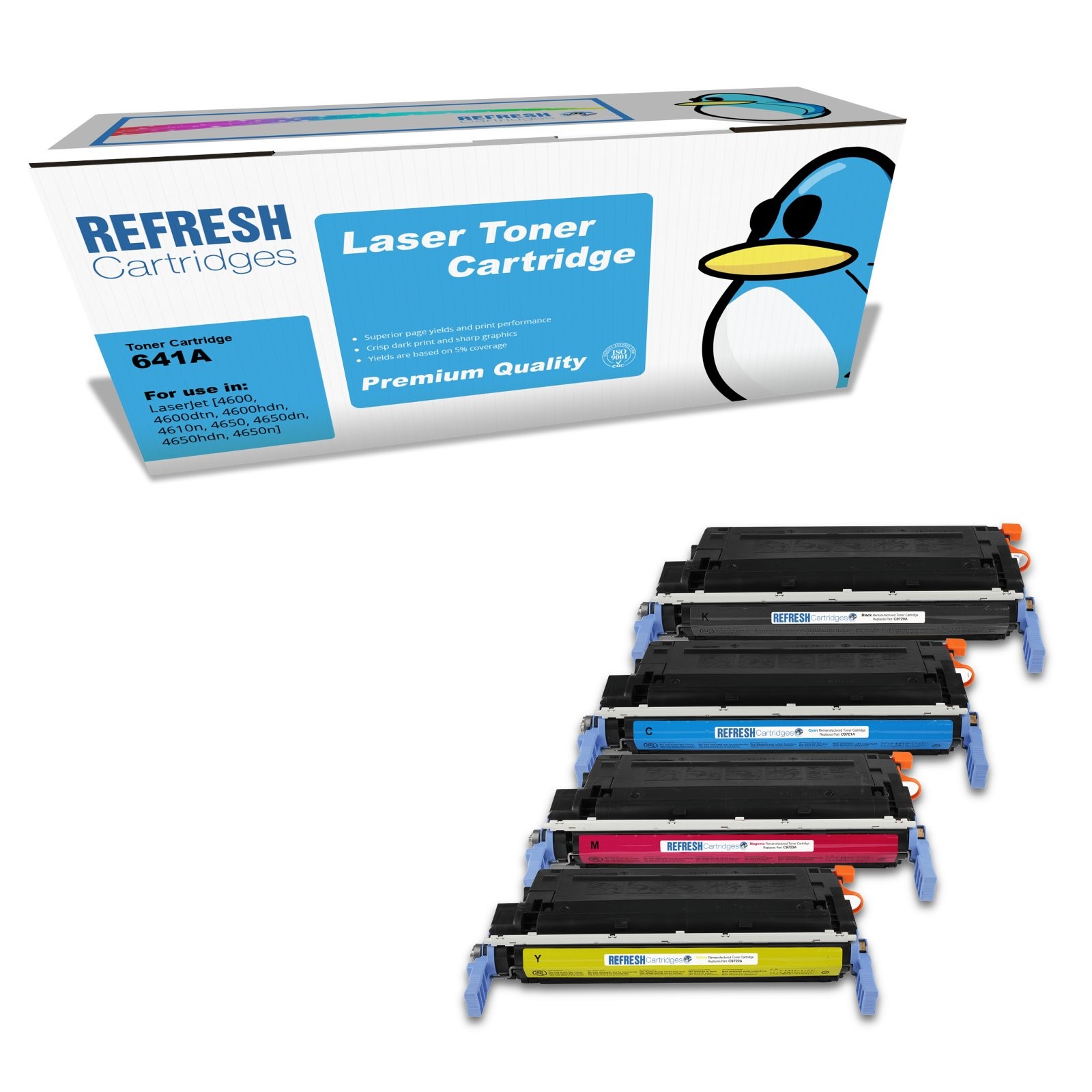 Refresh Cartridges Value Pack 641A BK/C/M/Y Toners Compatible With HP Printers