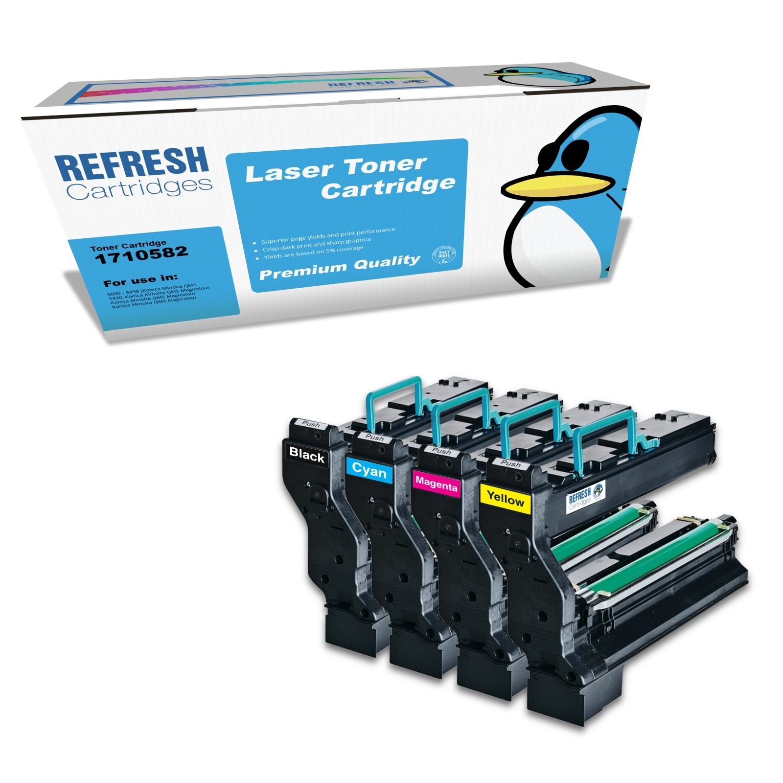 Refresh Cartridges Full Set Pack QMS 5430 Toners Compatible With Konica Minolta