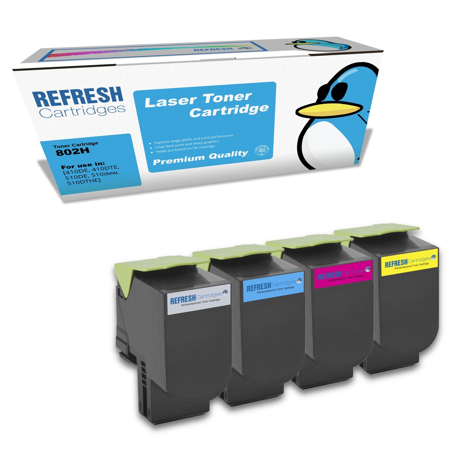 Refresh Cartridges Full Set 4 Pack 802H Toners Compatible With Lexmark Printers