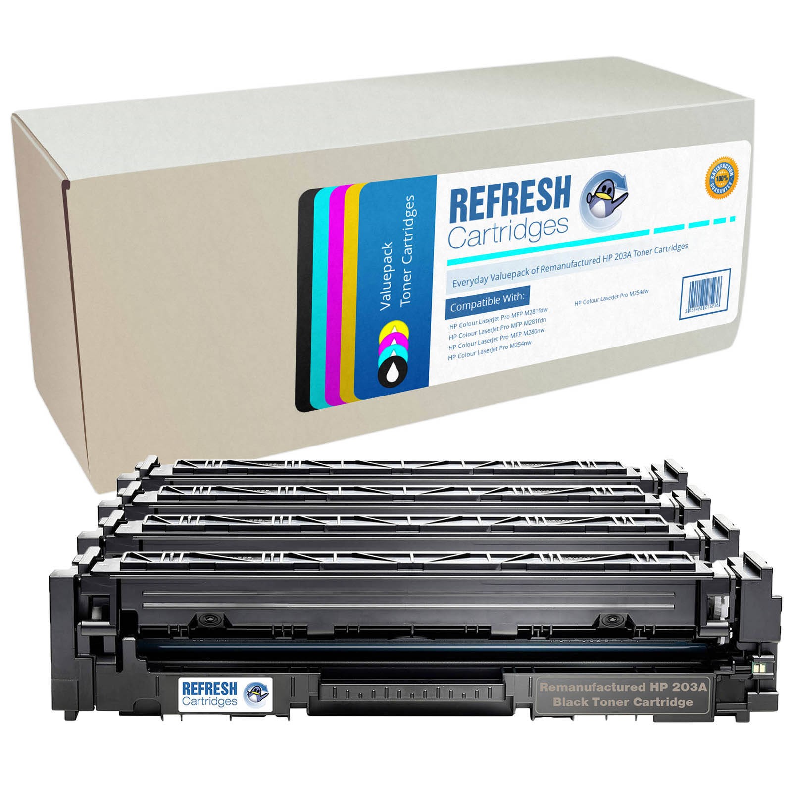Refresh Cartridges Full Pack Of 4 #203A BK/C/M/Y Toners Compatible With HP