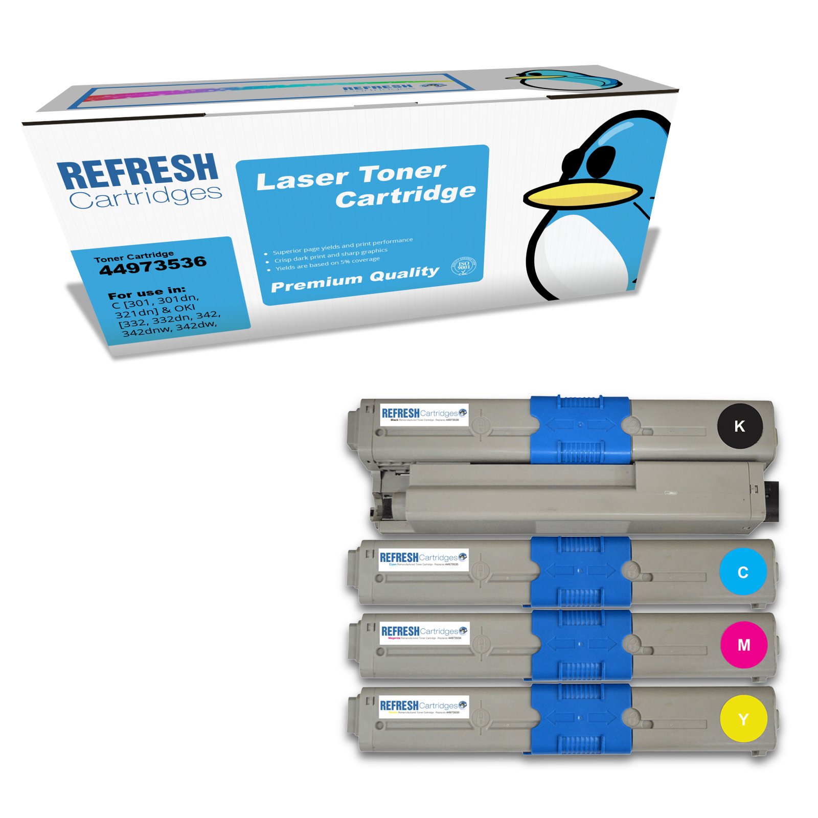 Refresh Cartridges Full Set Pack 44973536/5/4/3 Toners Compatible With Oki