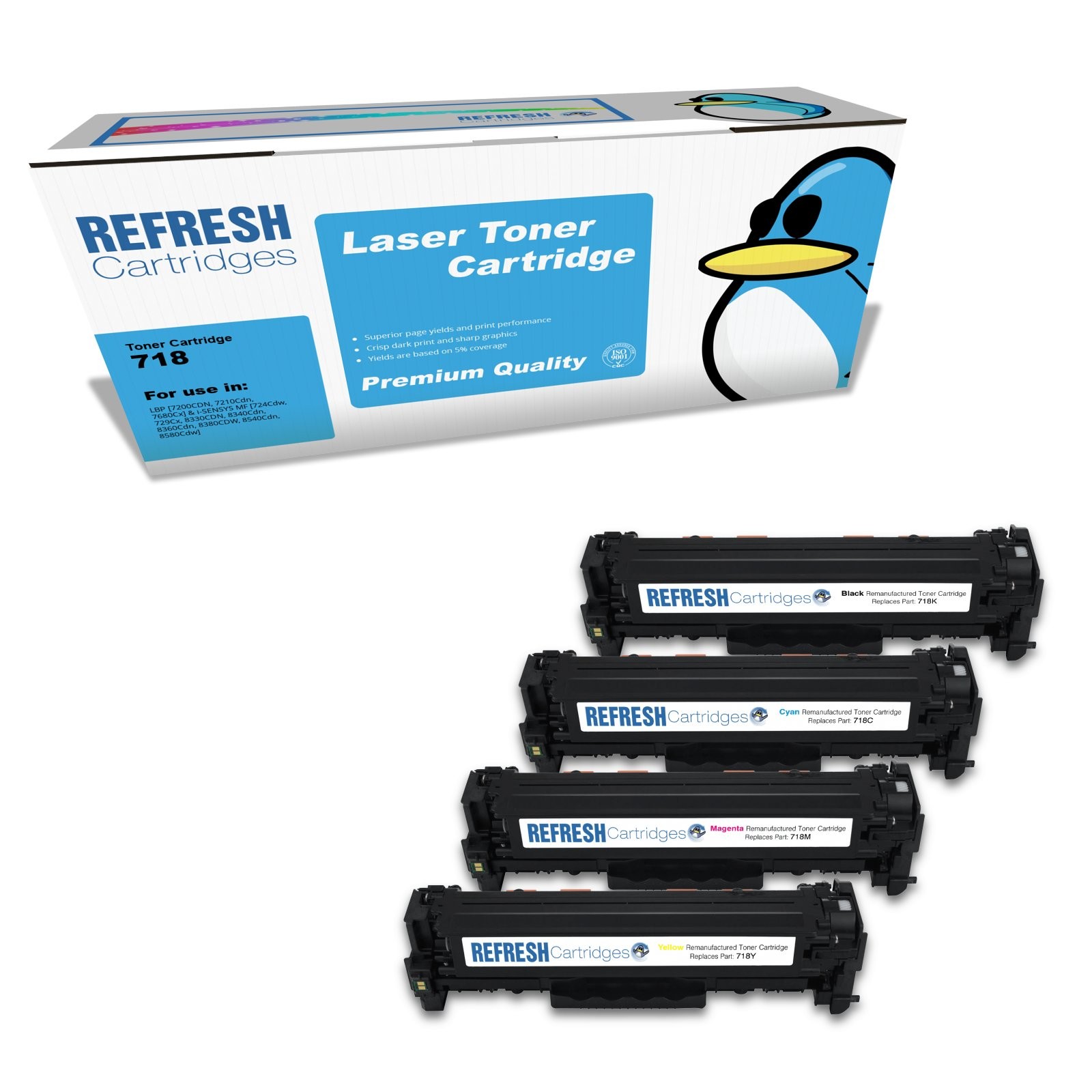 Refresh Cartridges Full Set 4 Pack #718 Toners Compatible With Canon Printers