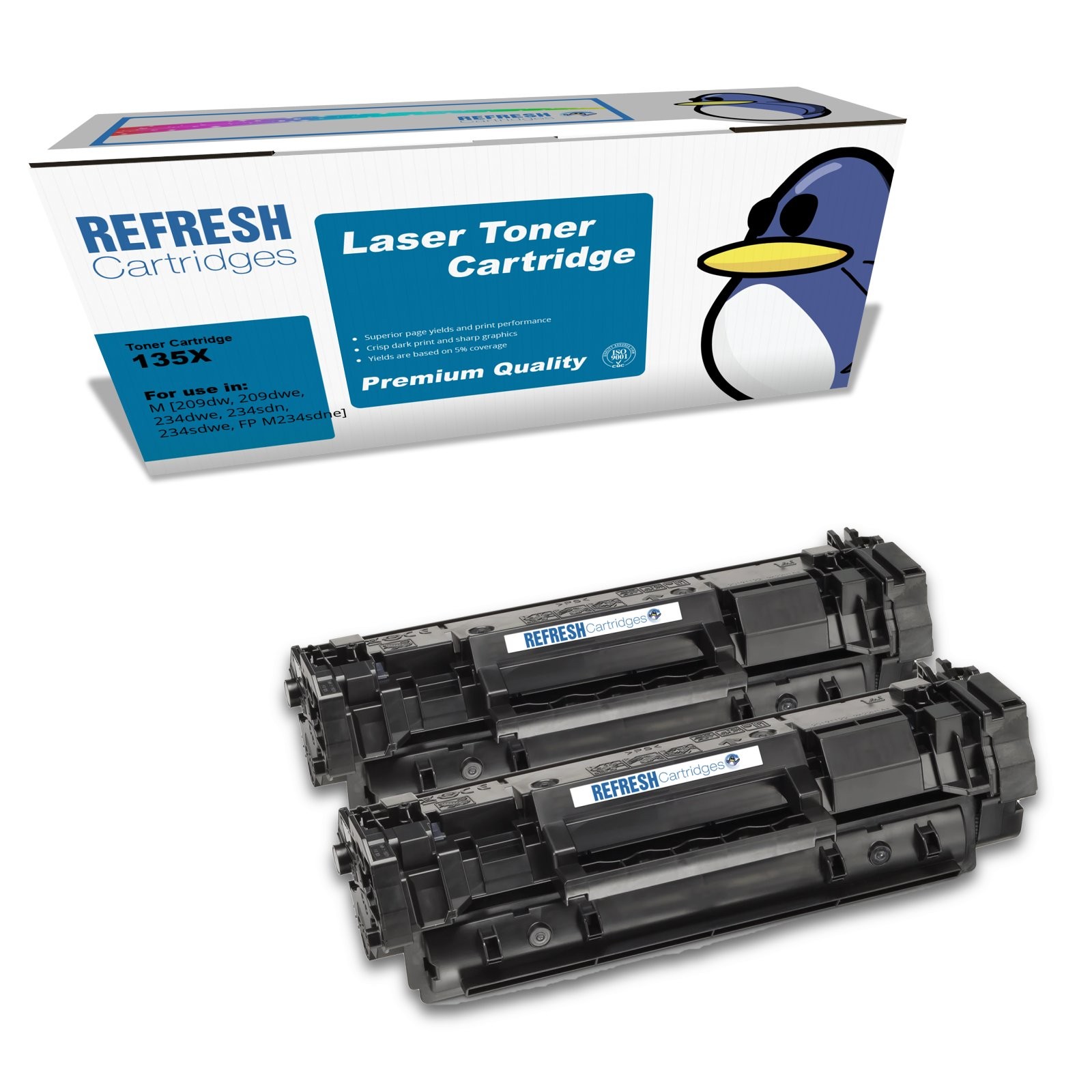 Refresh Cartridges Black 135X Twin Pack Toners Compatible With HP Printers