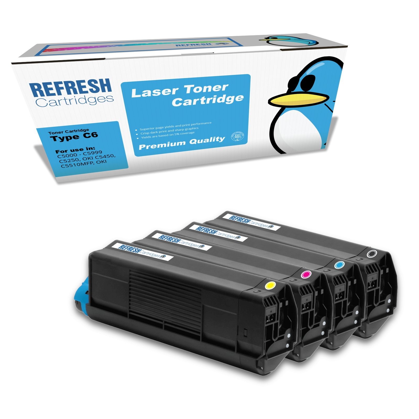Refresh Cartridges Full Set Pack Type C6 Toners Compatible With Oki Printers