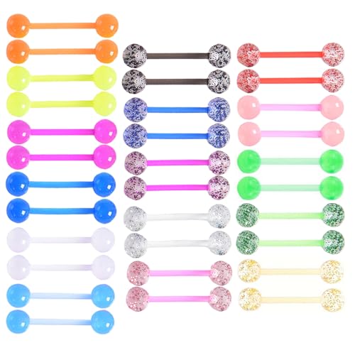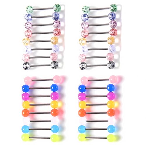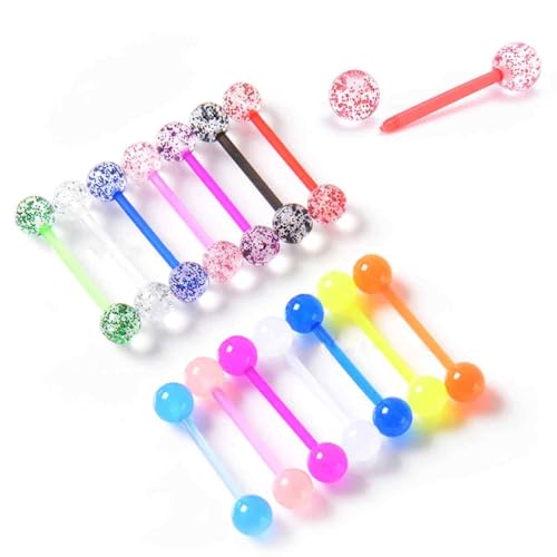 XXLKVSK 16Pcs Tongue Bars Glow in the Dark Tongue Bars Colorful Tongue Rings Plastic Tongue Nipple Barbell Bar Ring Mixed Ball Body Piercing Jewellery