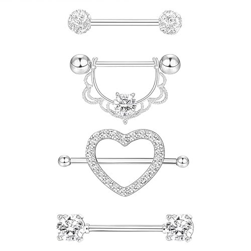 RSYHVG 4 Pieces 14G Nipple Bars Nipple Bar for Women Nipple Piercing Jewellery Surgical Steel Nipple Piercing Kit Tongue Bar Set Cute Butterfly Dangly Barbells Heart Flower Moon Body Piercing Barbell