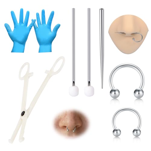 WillTen Septum Piercing Kit with Disposable 12G 14G 16G 18G Piercing Tool, Clamps, Taper, Stainless Steel Belly Button Bar, Septum Ring, Nipple Ring, Tongue Bar, Lip Stud for Replacement