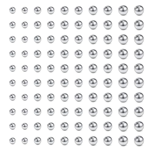 AVYRING 100Pcs Piercing Balls, Silver Stainless Steel Replacement Lip Labert Rook Tongue Belly Bar Barbell Septum Balls Set for 16G 1.2mm Thread Piercing Jewellery 2.5mm 3mm 4mm 5mm 6mm Mixed