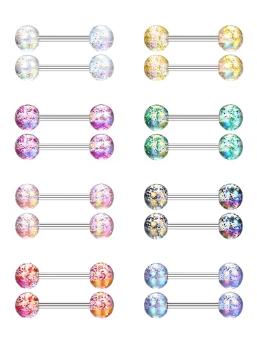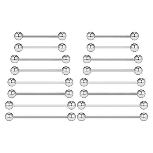 CASSIECA 16Pcs 14G Tongue Bars Surgical Steel Tongue Bar Piercing Hypoallergenic Metal Tongue Bar 14mm Nipple Bars Nipple Piercing Jewellery Barbell Piercing Jewellery for Women Men