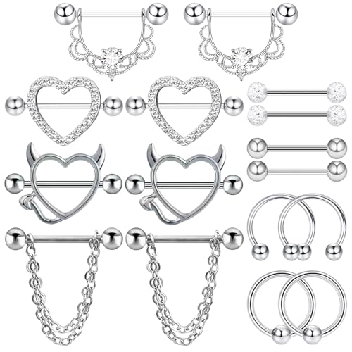 TYXHXTF 8 Pairs Nipple Piercing Jewellery, 14G Nipple Bars, Bar Piercing Tongue Bar Nipple Bar, Surgical Steel Nipple Jewellery Body Piercing for Women