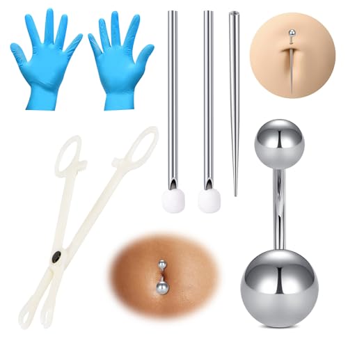 WillTen Belly Button Piercing Kit with Disposable 12G 14G 16G 18G Piercing Tool, Clamps, Taper, Stainless Steel Belly Button Bar, Septum Ring, Nipple Ring, Tongue Bar, Lip Stud for Replacement