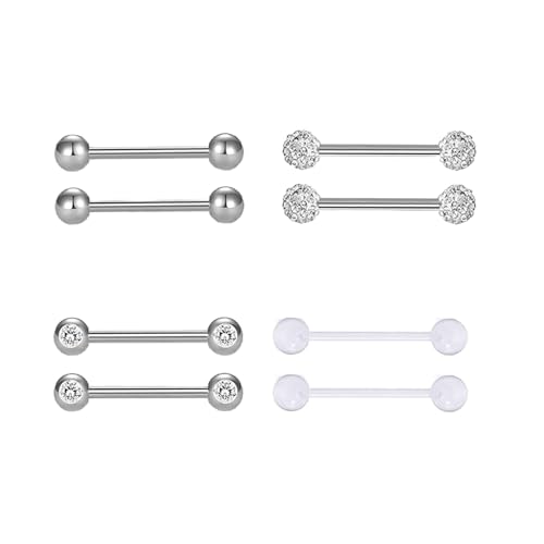 JNGTKL Nipple Piercing Jewellery, 4 Pairs Tongue Bar Piercing, Stainless Steel Tongue Bars, Showcase Personalized Accessories, Both Men And Women Can Use It(Four Styles)