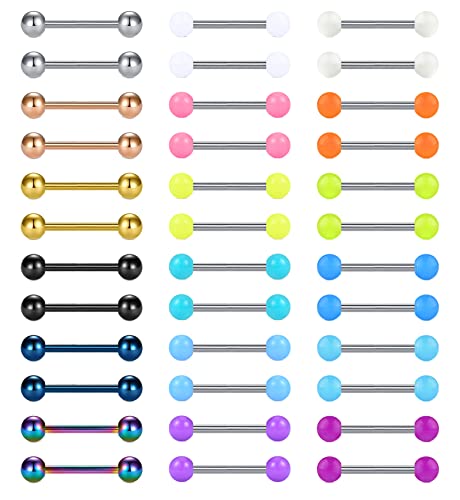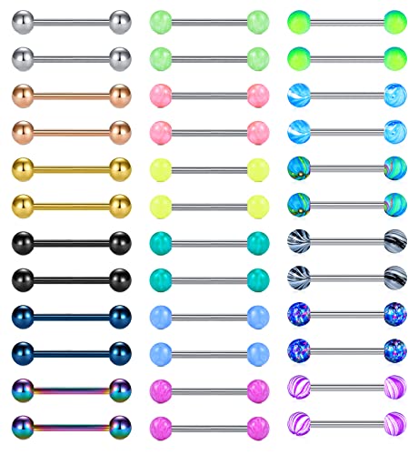 Pddenality 32 Pcs Tongue Bars Tongue Bar Piercing,Tongue Bar Tongue Piercing Tongue Piercings,Tongue Piercing Jewellery Multi-Color Tongue Bars Jewellery For Women Men