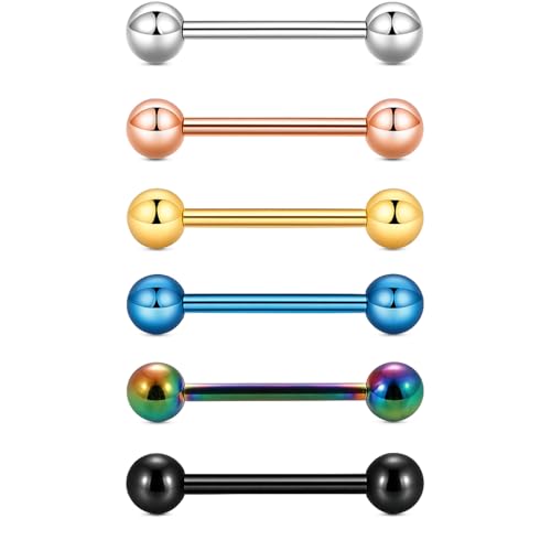 Vayfoni 6PCS Tongue Bars - Nipple Bars Piercing Set - 316L Stainless Steel Barbell Tongue Bar Piercing Jewelry 1.6×16mm with 5mm Balls - for Women & Men (Multi-Color)