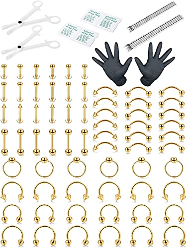 LOLIAS 84Pcs Professional Piercing Kit Nose Piercing Stainless Steel Septum Hoop Piercing Tragus Daith Cartilage Earrings Belly Button Piercing Kit Tongue Labret Lip Bar Piercing Jewerly 14G 16G