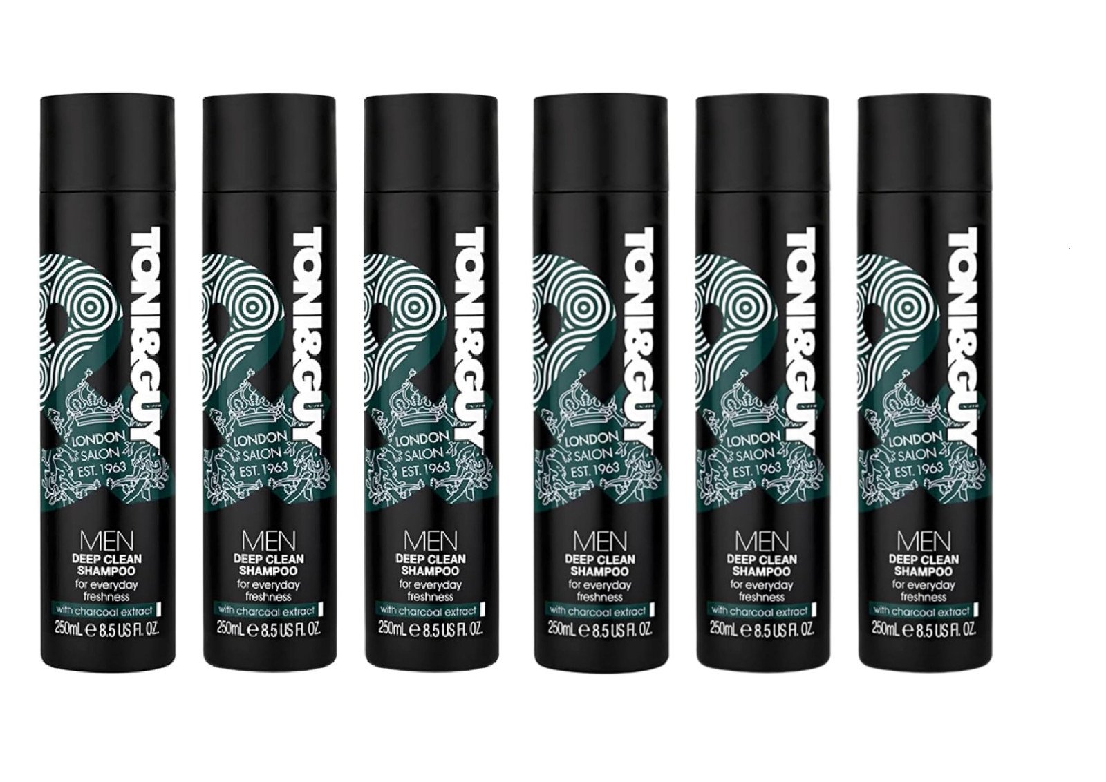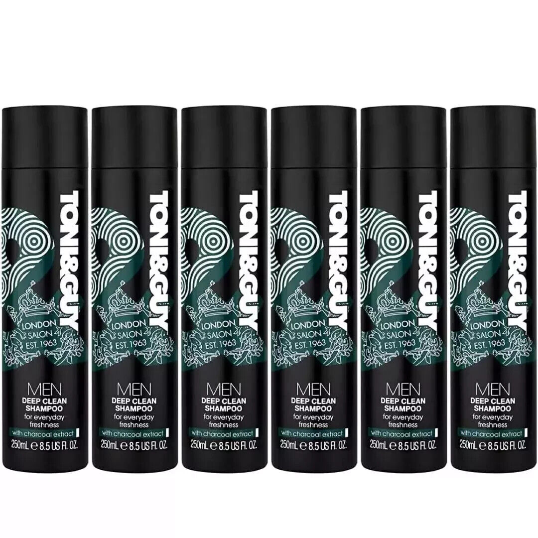 6 x 250ml Toni & Guy Men Deep Clean Shampoo With Charcoal Extract