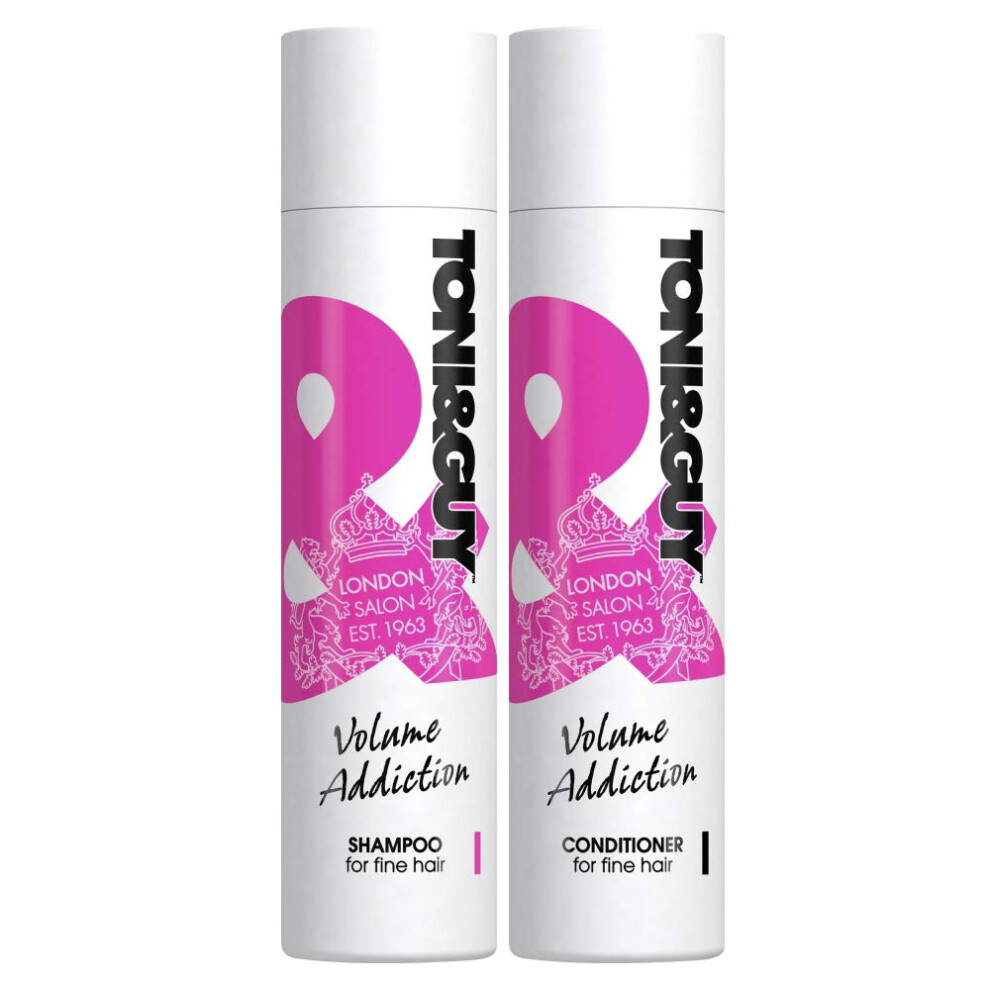 Toni & Guy Salon Shampoo and Conditioner Set for Fine Hair, Pack of 4 x 250ml Bottles (2 x Volume Addiction Shampoo, 2 x Volume Addiction Conditioner)
