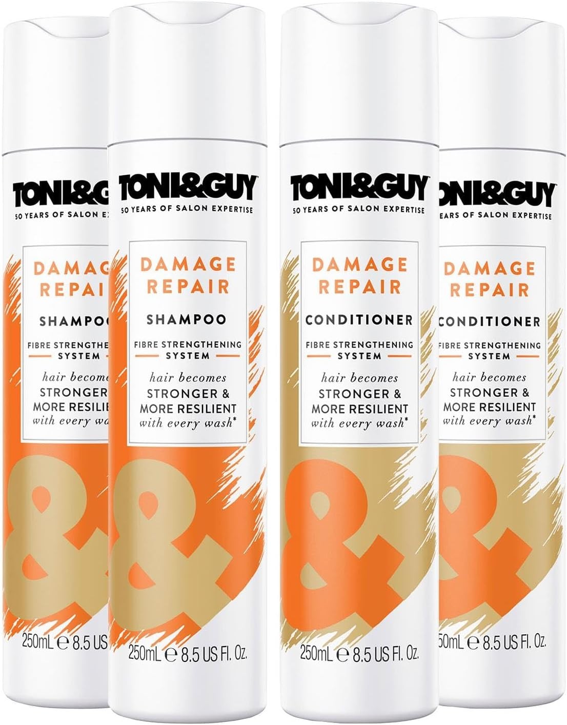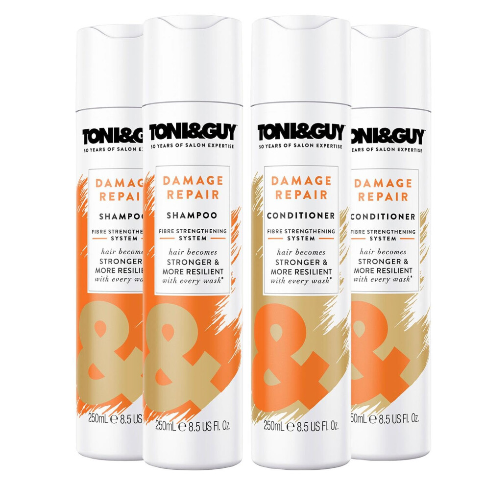 Toni & Guy Salon Shampoo and Conditioner for Dry Damaged Hair, Pack of 4 x 250m