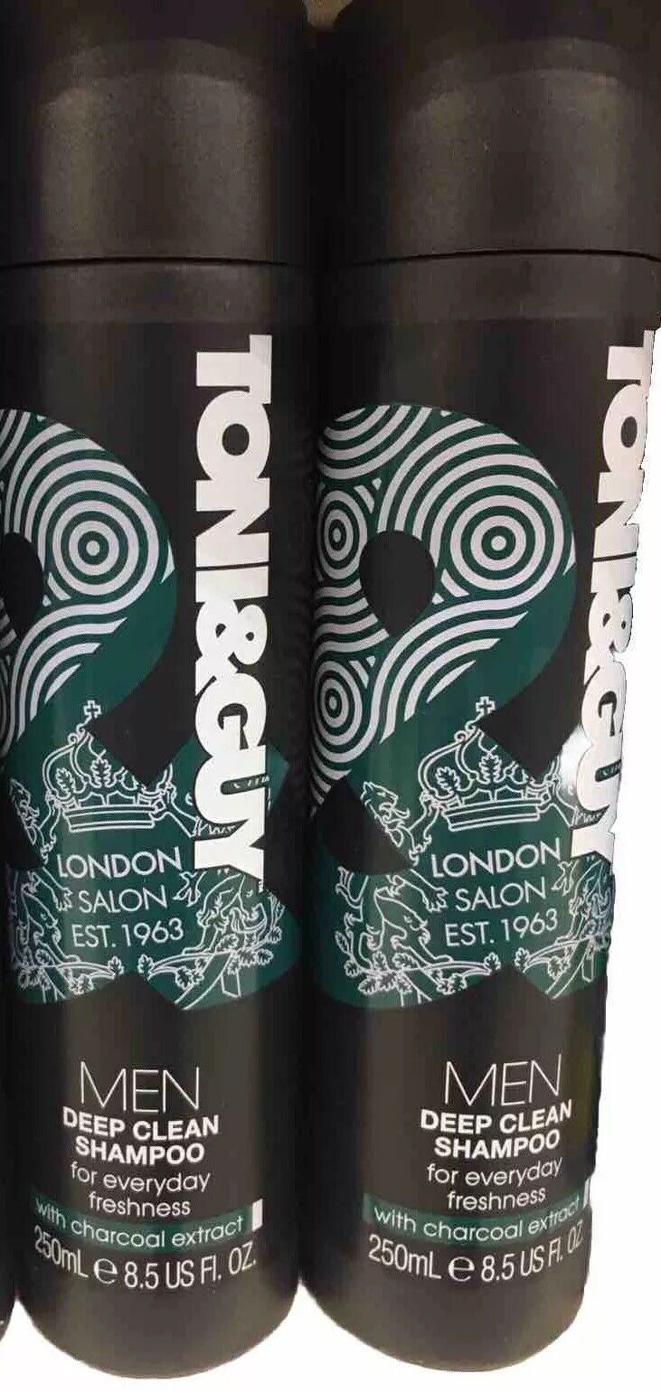 2 x 250ml Toni & Guy Men Deep Clean Shampoo Everyday Freshness Charcoal Extract