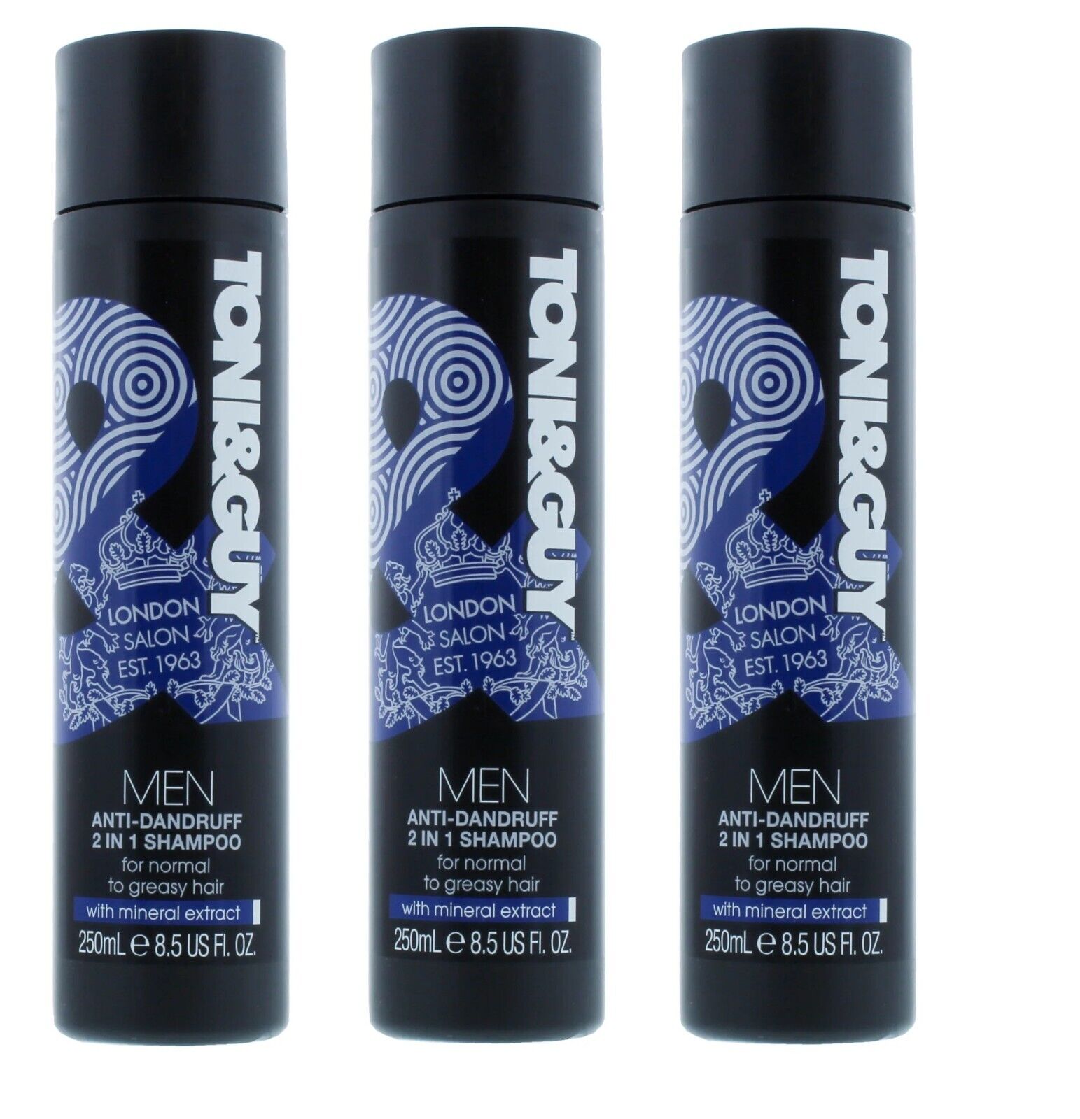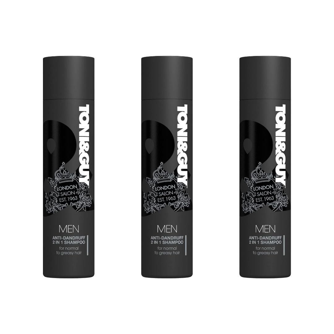 3 x Toni & Guy Men Anti-Dandruff 2-In-1 Shampoo For Normal To Greasy Hair 250ml