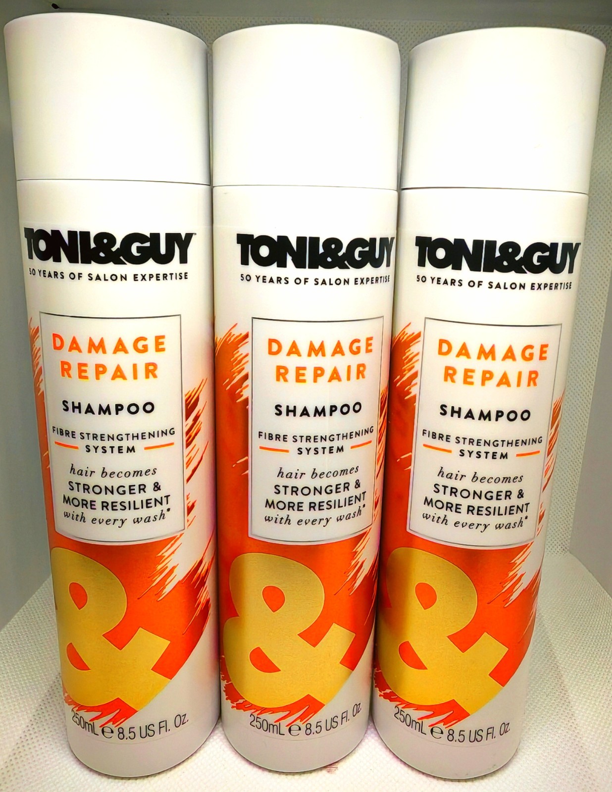 3 x Toni & Guy Damage Repair Shampoo 250ml Fibre Strengthening