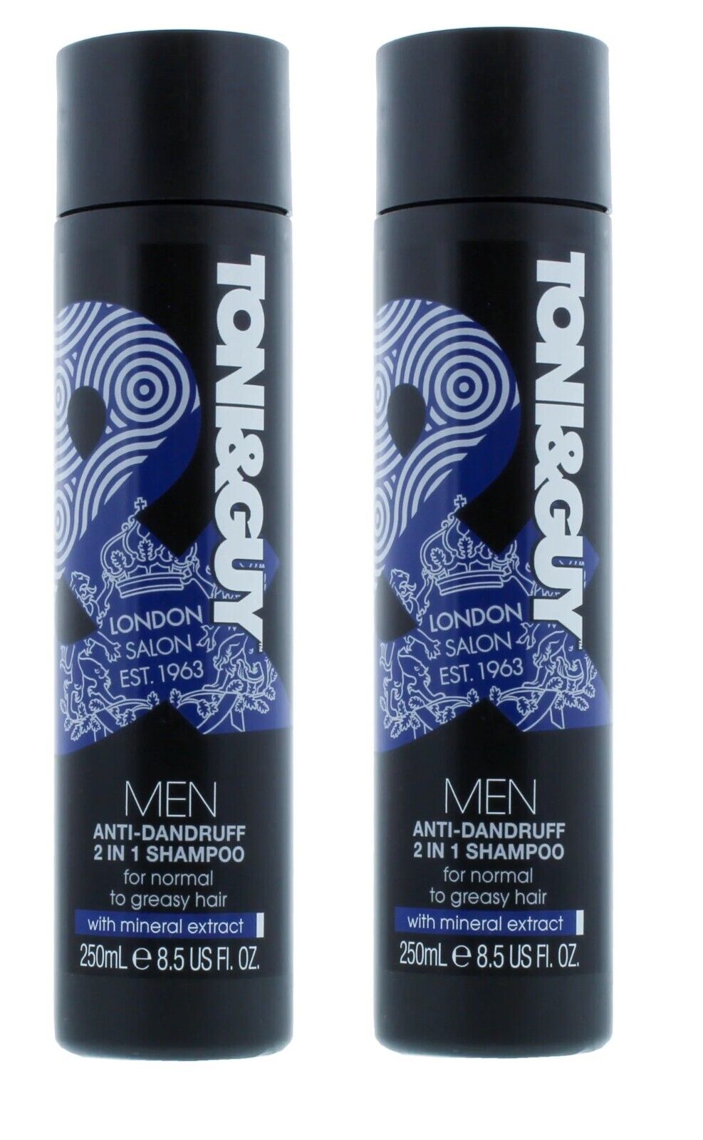 2 x Toni & Guy Men Anti-Dandruff 2-In-1 Shampoo For Normal To Greasy Hair 250ml