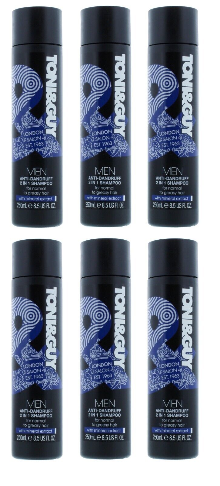 6 x Toni & Guy Men Anti-Dandruff 2-In-1 Shampoo For Normal To Greasy Hair 250ml