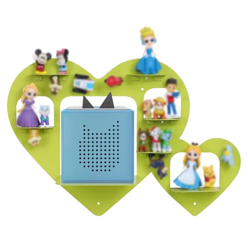 Riuog Shelf for Tonies & Toniebox,Tonie Doll Storage, Wall-Mounted Shelf for Kids Room, Magnetic Metal Rack with Heart Design for Girls and Boys, Accessories for Toniebox Starter Set (Green)