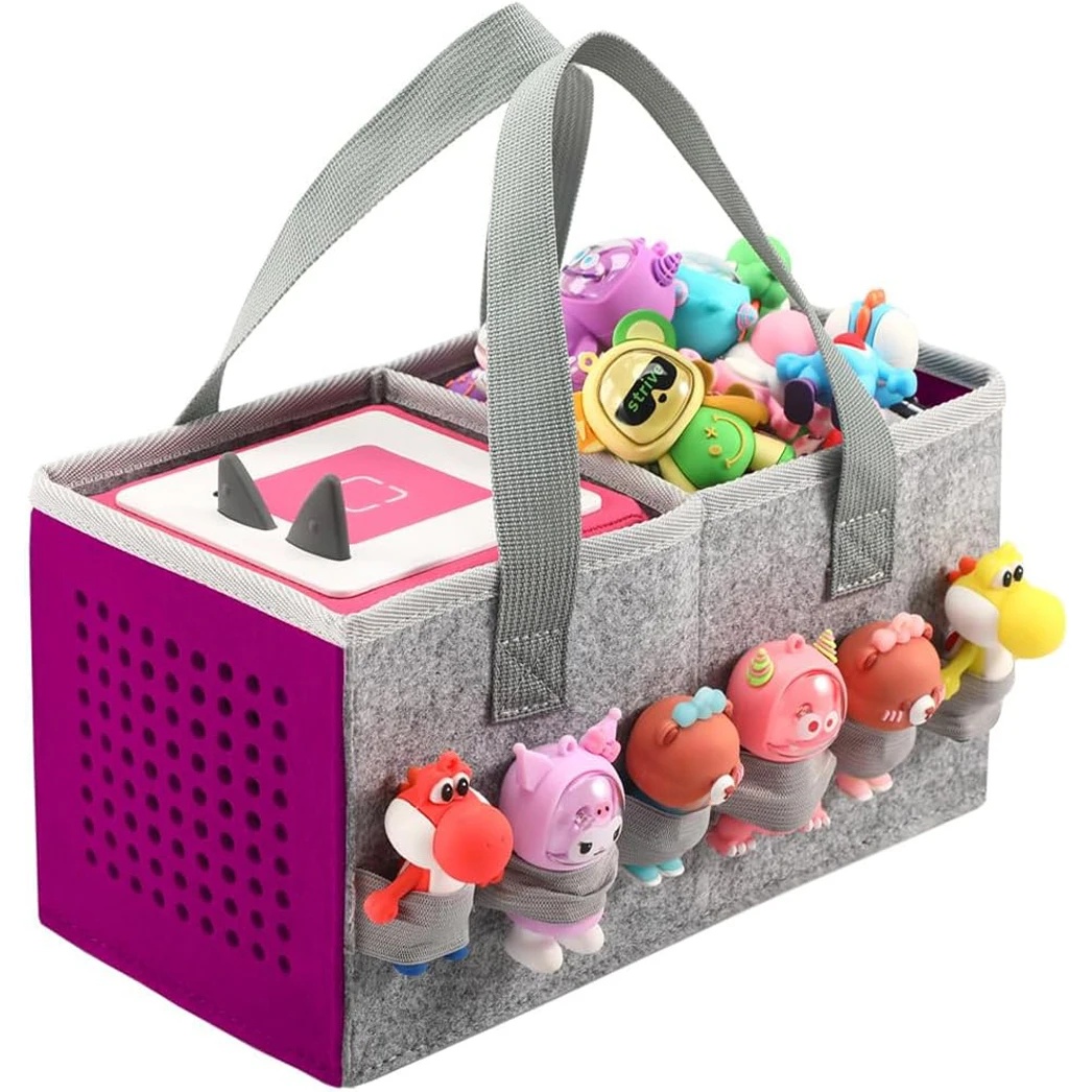 (Purple) Carry Bag Compatible Toniebox Starter Set And Accessories, Felt Organiser Bag For Tonies Figure Toniebox Travel With Handle