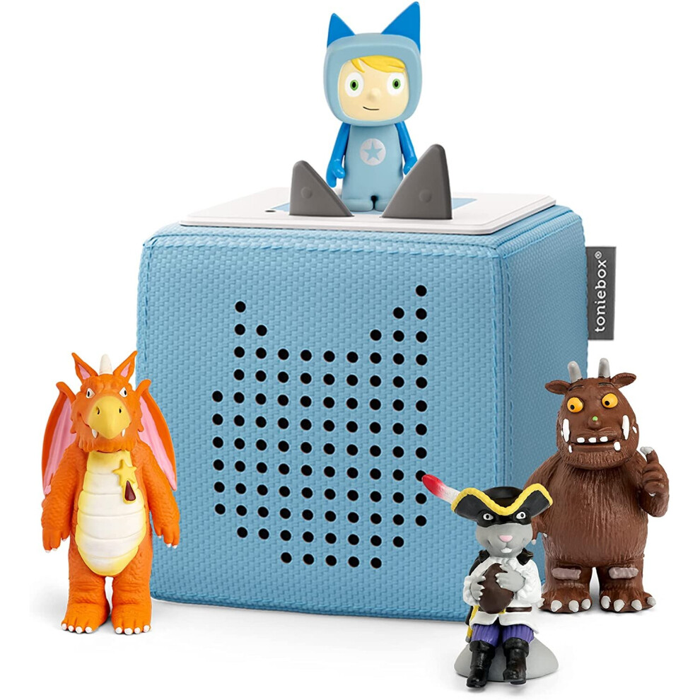 tonies Toniebox Julia Donaldson Bundle Incl. 1 Creative and 3 Characters, The Gruffalo, Zog, and Highway Rat, Kids Presents, Screen-Free Audiobooks/Kids Music Player, Early Learning Toys, Light Blue