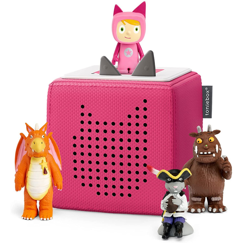 tonies Toniebox Julia Donaldson Bundle Incl. 1 Creative and 3 Characters, The Gruffalo, Zog, and Highway Rat, Kids Presents, Screen-Free Audiobooks and Kids Music Player, Early Learning Toys, Pink