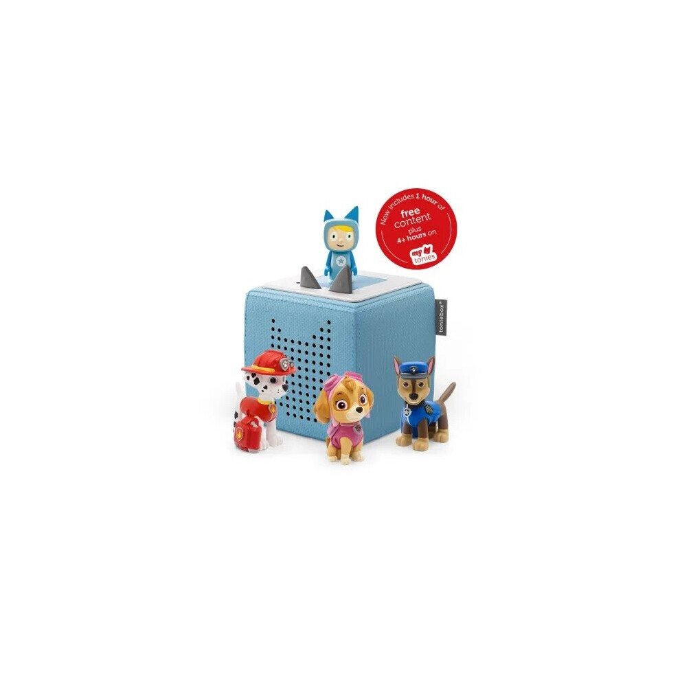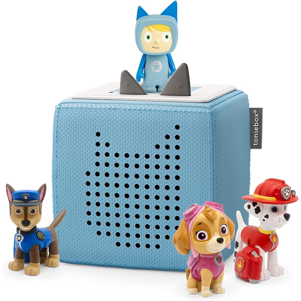 tonies Toniebox Paw Patrol Bundle Incl. 1 Creative and 3 Characters: Chase, Skye, and Marshall, Kids Gifts, Screen-Free Kids Music Player, Early Development & Activity Toys, Light Blue