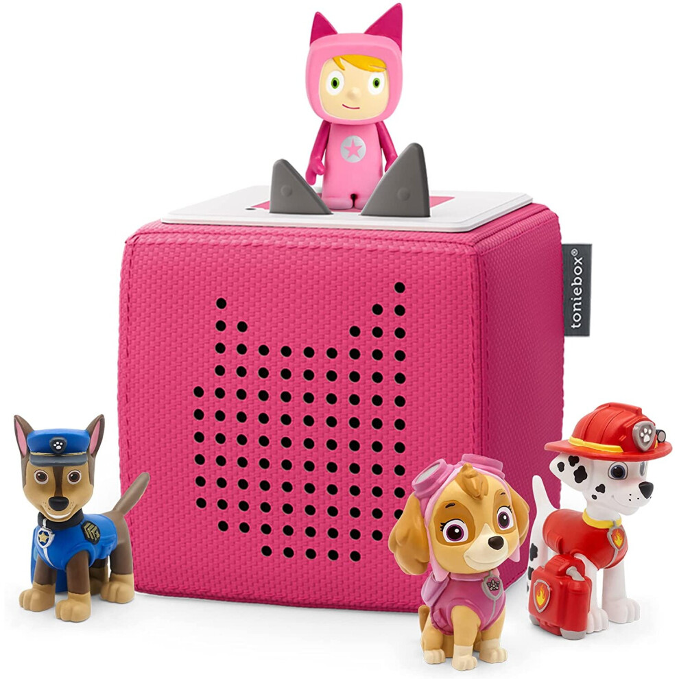 tonies Toniebox Paw Patrol Bundle Incl. 1 Creative and 3 Characters: Chase, Skye, and Marshall, Kids Gifts, Screen-Free Audiobooks and Kids Music Player, Early Development & Activity Toys, Pink