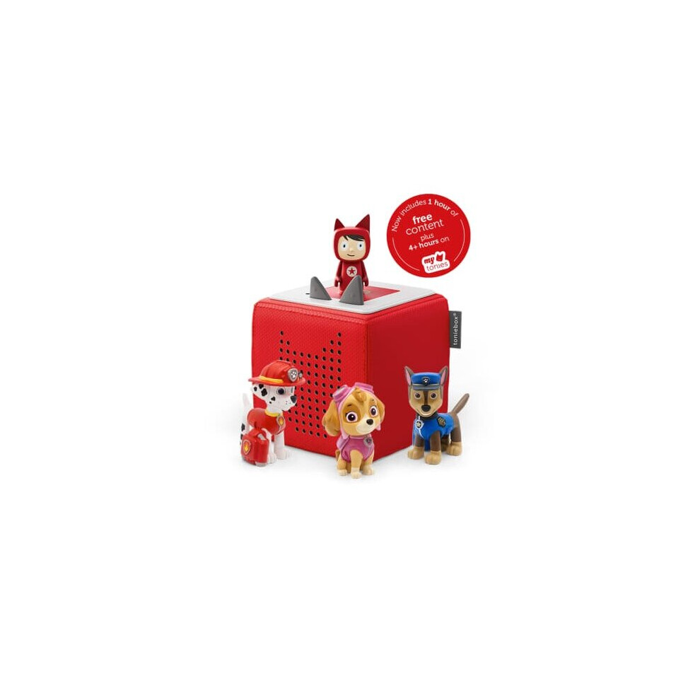 tonies Toniebox Paw Patrol Bundle Incl. 1 Creative and 3 Characters: Chase, Skye, and Marshall, Kids Gifts, Screen-Free Audiobooks and Kids Music Player, Early Development & Activity Toys, Red
