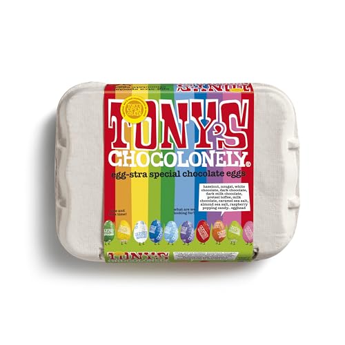 Tony's Chocolonely Easter Eggs Assortment - 12 Easter Eggs in Foil - Fairtrade Belgian Chocolate - Easter Gifts - Chocolate Box - Mini Eggs - Family Chocolate