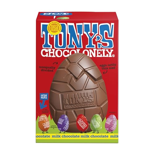 Tony's Chocolonely Large Easter Egg - Milk Chocolate with 5 Smaller Solid Chocolate Eggs -Fairtrade Easter Gifts (242g)